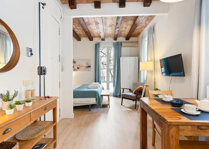 Ciutat Vella es el corazón histórico de Barcelona. Este moderno apartamento de una habitación combina la comodidad y el estilo, ofreciendo un ambiente acogedor ideal para aquellos que desean explorar la ciudad. Con acceso a una cocina equipada con horno microondas y frigorífico, cocinar se convierte en una experiencia placentera. Además, cuenta con una tele de pantalla plana y una lavadora, proporcionando todas las comodidades necesarias para una estancia rejuvenecedora. El apartamento climatizado incluye un elegante baño con bidet y ducha, asegurando que cada detalle de tu estancia sea confortable. Gracias a la conexión WiFi gratuita, podrás mantenerte conectado y compartir tus inolvidables momentos en la ciudad.